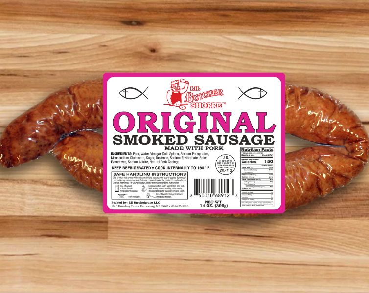 The original Lil Butcher Shoppe smoked Pork sausage is made with a perfectly balanced blend of seasonings and selected spices, which is our exclusive, secret family recipe that started it all.